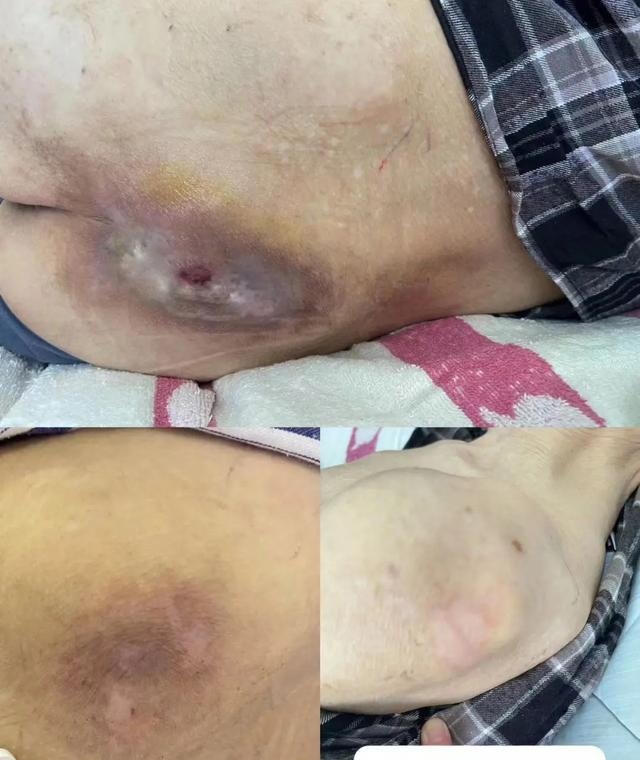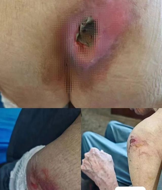 同时,许大爷左肩、双侧大腿也有多处压疮,虽吐词不清无法表达,但他痛苦的样子让家人很是心疼。