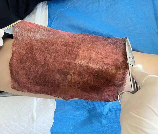 听说岳阳县人民医院向红分院在治疗压疮上有绝招,于是就到向红分院住院治疗,科主任肖哲贤和管床医师夏瑜探查发现,许大爷臂部有一如手掌心大小的压疮,坏死深达肌层及骨膜,可见白色的骨膜,皮肤、肌肉呈褐色,有脓性分泌物,伴浓烈的恶臭,诊断为4期压疮。