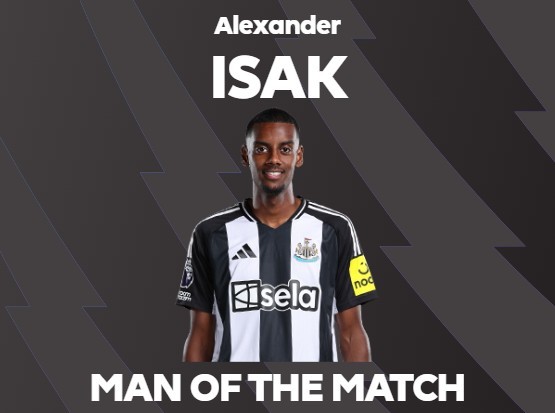 最终,经过球迷在英超官网的投票,伊萨克也凭借自己在本场比赛中的决定性表现成功当选了全场最佳球员。