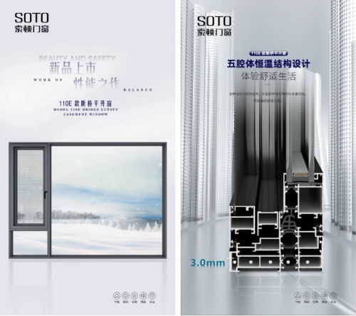 索顿断桥外开窗采用了多腔体结构、多道密封、快速排水系统等技术,具有很高的强度和密封性能,壁厚3.0mm的外开窗更可承重大面积落地玻璃。