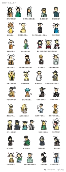 2019年,罗元开始在网上分享“陌生人”系列的创作。他写道:“午休时间在街边小店画的一些路人,请你们走慢点好吗?”有时是“今天对我笑的一个路人”“两个开朗的路人”“满脸开心的路人”,有时是“低头族路人”“热恋中的路人”“情人节收到花或正要去送花的路人”。同年5月,罗元完成了“陌生人系列”,与网友分享了1050个“陌生人”小人。他写道:“用简单直接的形式,快速记录下每一个路人经过的模样。和你擦肩的每个陌生人,可能都藏着有趣的灵魂。”
