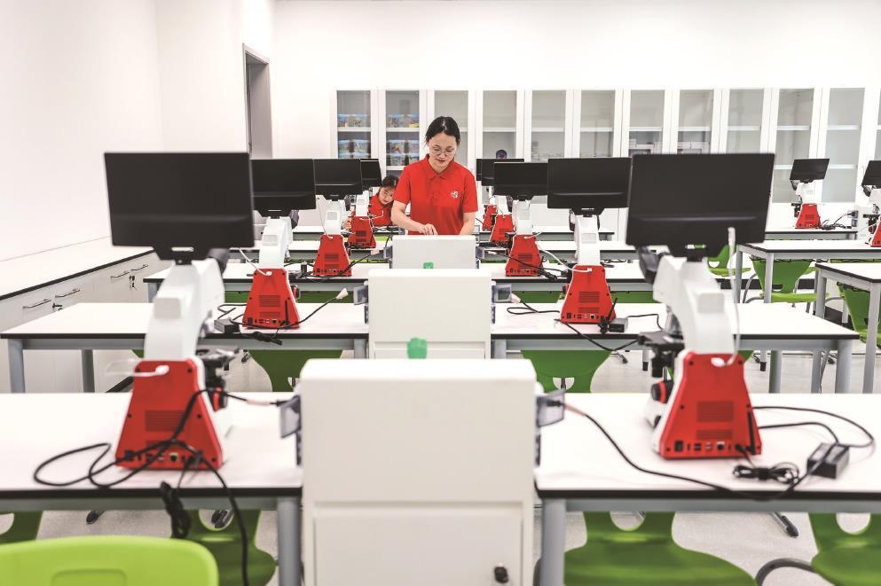 漫步在不少新学校,校园环境让人耳目一新。从教学空间的布局,到各类专用实验室、教室的设计巧思,再到多样体育运动场馆和设施的打造……可以说,整个校园空间都在无声述说着新学校承载的全新育人理念。