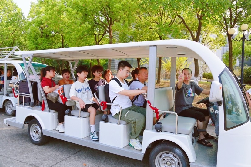 考虑到新生及家长可能面临的长途奔波,学校推出了一系列贴心服务。在迎新期间,学校特别安排从上海南站到奉贤校区的大巴车接送服务,在校内设置多辆短驳车,并在全程设置志愿者点位,将学生及行李送至每一个围合门口。学校还将迎新点延伸到宿舍楼下,实现学院报到点、住宿报到点“两点合一”。
