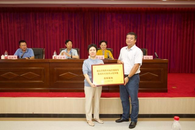 开班仪式上,授予了岳阳市中医医院湖南省慢性肌肉骨骼疼痛康复临床技术示范基地的牌匾。