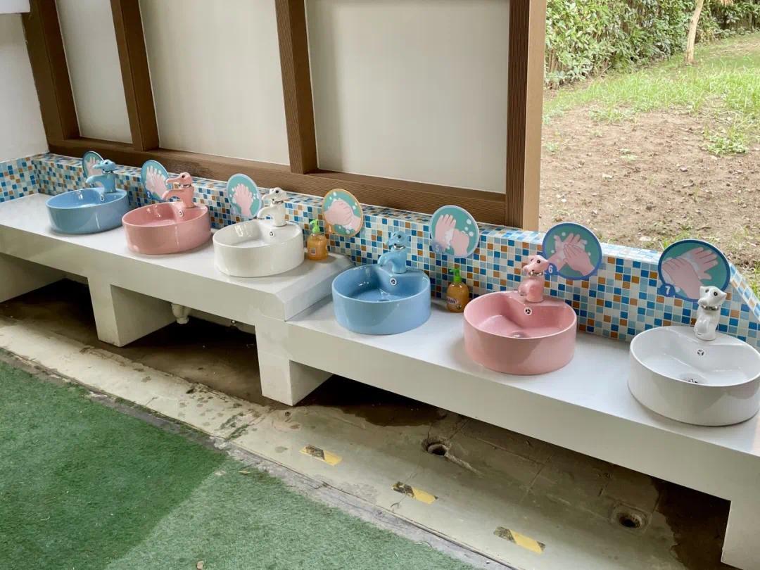 北新泾第三幼儿园也在今年暑假改建了部分校园设施。一进园,崭新的校园文化墙凸显了幼儿园“乐雅育人 灵动智慧”的课程理念。沙水池、门厅进行了翻新,校园门内的幼儿洗手台不仅数量增多了,还变成了可爱的象鼻子造型。教学楼内,增设了专用活动室——建构室、科探室和图书室。在这里,小朋友们将有更多沉浸式探索和学习的空间。