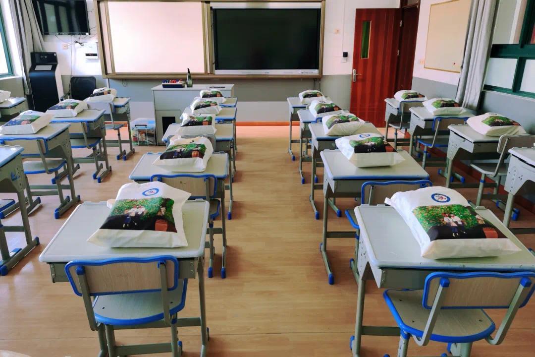 新泾中学为了让学生在返校报到时更快更好地拿到新学期的课本,提前在教室里分发整理好书本,放置在课桌上静待小主人的到来。由于书本较多,老师们还贴心地为九年级学生的书本装了袋,为学生领书提供便利。