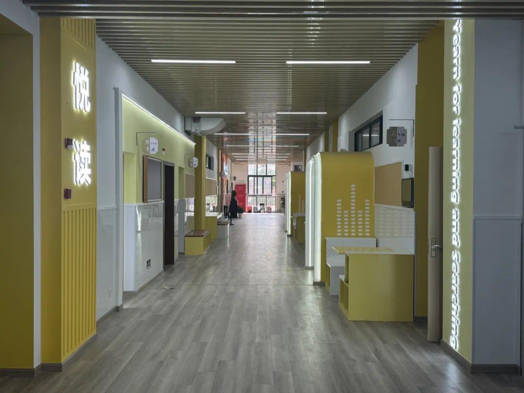 姚连生中学韵楼一楼焕然一新,全新打造了“姚中数字悦读空间”,向创设新型书香校园迈步。这个公共空间将图书馆前伸至学生的日常学习生活区域,旨在培养学生“随手阅读”的习惯,让阅读越读越精彩。同时,“姚中数字悦读空间”将利用数字化技术,建立数据分析模型,促进孩子们深层次阅读。