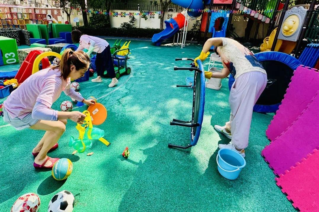 步入安顺路幼儿园,后勤部门早早地进行了卫生大扫除,针对厨房、教室、卧室等重点区域,进行清洁、消毒,呈现洁净清新的崭新面貌,共同迎接新学期的到来。