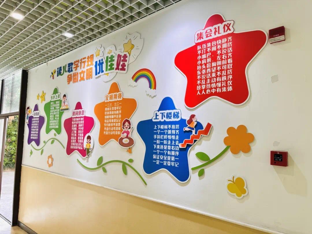 绿苑小学的校园里也悄悄有了新变化。教学楼前的橱窗设计展示学校近年来的“优+活力”课程以及缤纷活动。教学楼内,不同楼面主题的育人墙面也焕然一新,如一楼布置了行规墙供一年级新生学习,为新生适应校园、健康成长导航。