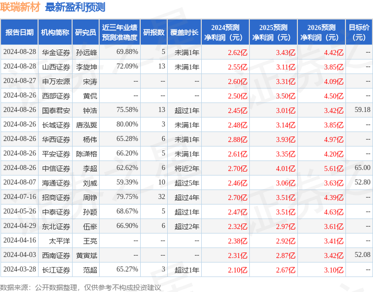 以下是详细的盈利预测信息: