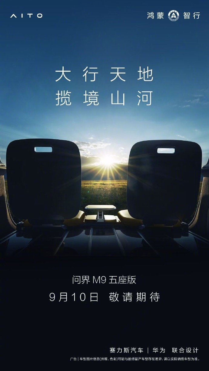 问界 M9 是鸿蒙智行旗下的旗舰车型,由华为智能汽车全栈技术解决方案打造,拥有多项业界首创的功能和技术。它是一款定位于豪华 D 级 SUV 的车型,提供了增程版和纯电版两种动力车型,起售价为 46.98 万元。此次发布会将推出问界 M9 五座版。
