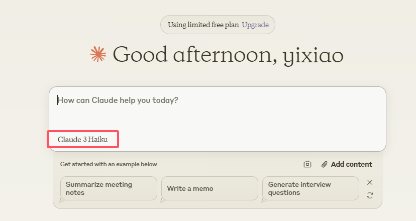 🚫 免费用户无法使用Claude 3.5 Sonnet模型,只能使用功能简单的Claude 3 Haiku模型。