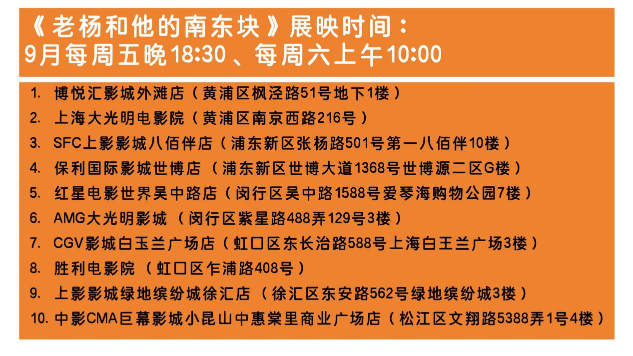据悉,《老杨和他的南东块》已入围第十三届中国纪录片学院奖。目前,这部电影正在上海艺术电影联盟合作的10家影院上映。观众可以在展映影院进行购票,也可以通过淘票票、猫眼电影等官方平台在线上购买观影票,现场感受这些在黄河路上绽放的生命之花。