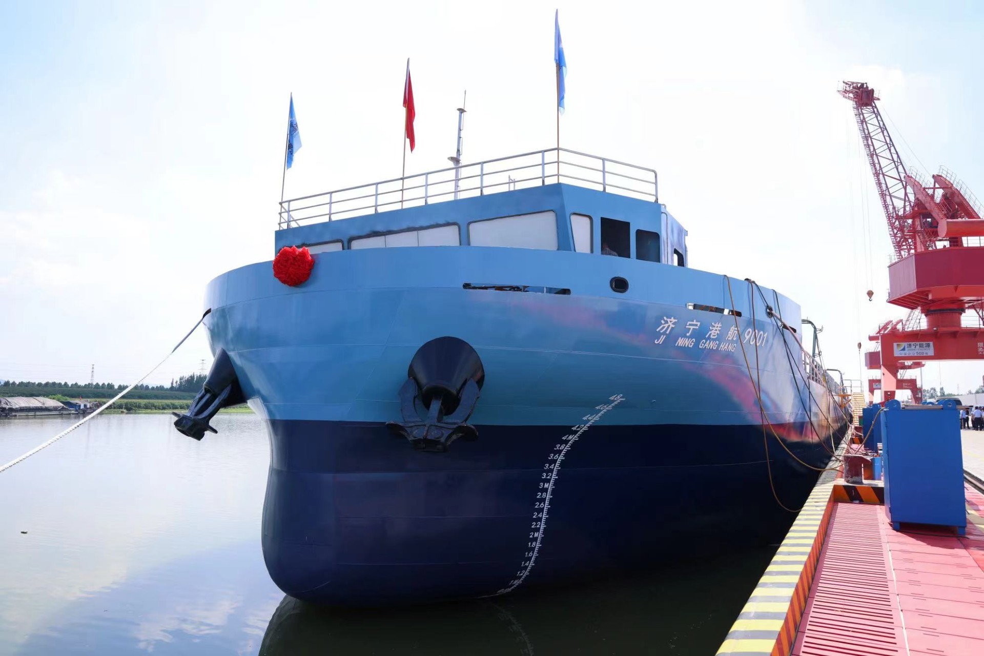 冯劲舸告诉记者,“90米的LNG动力集装箱运输船和67.6米电动力船,8月22日顺利在济宁邹城顺利下水,拉开了内河新能源船舶批量化生产的序幕。两艘新能源船舶船阻降低6%,节能3%。”据了解,90米的LNG动力集装箱运输船满载能装载161只集装箱载重5000吨,航程能达到2000公里左右;67.6米LNG动力多用途运输船满载64只集装箱或载重2000吨散货,采用换罐模式补充燃料,自梁山港可直接通达苏南运河三级航道,将成为京杭运河最主流船型。