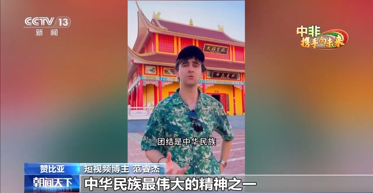短视频博主 范睿杰:在我个人的IP视频中,我的目标是把中国的文化以及历史介绍给外国人,尤其是我的非洲兄弟姐妹,我们最重要的目标还是要把中国和非洲连接在一起,加深中非友谊,还有中非贸易。