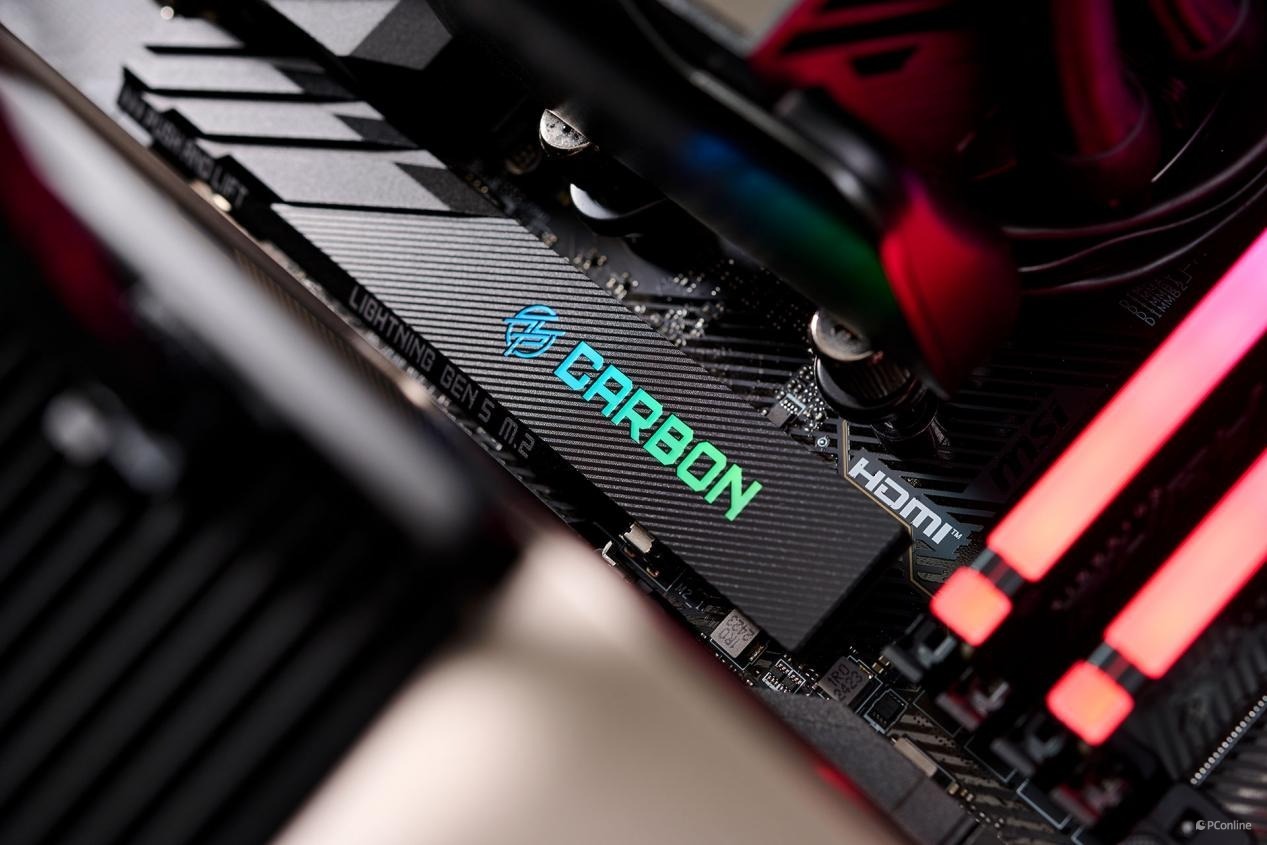 VRM顶部配上是一块RGB龙盾灯板,同样CARBON标签也是RGB灯设计。