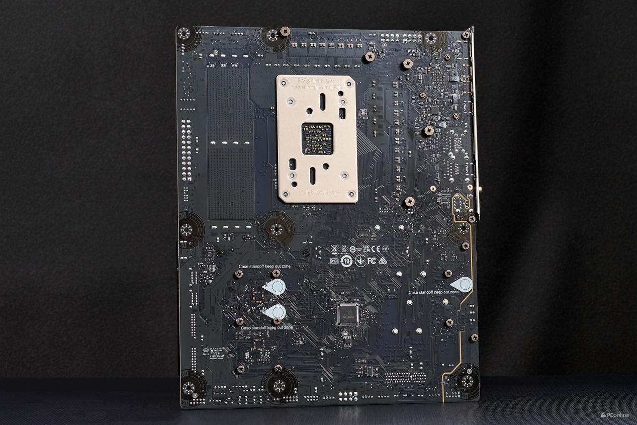 微星MPG X870E CARBON WIFI暗黑主板采用标准的ATX大小规格设计,大面积的重型散热马甲让主板整体分量有点沉;再者背部也有不少的芯片元件,所以安装时需要多注意。