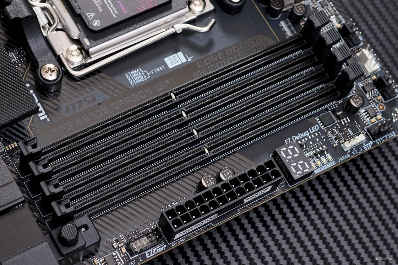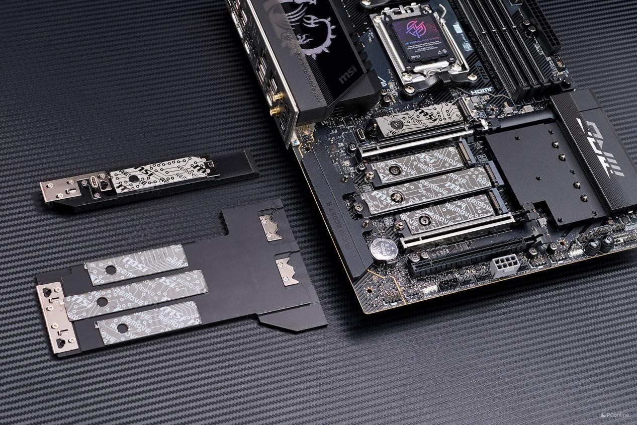 主板配上了4条DDR5内存插槽,支持最先进的DDR5双通道内存;同时支持AMD EXPO内存技术,可以处理器与内存运行在最佳的性能状态。而根据之前透露的消息来看,ZEN5处理器支持异步分频,配合上微星自家MSI MEMORY TRY IT与High-efficiency Mode模式,内存超频与效能上都将会获得较大的提升。