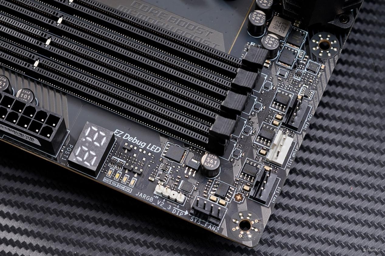 EZ Debug LED灯可以了解主板开机状态;主板右上角还配上的四个风扇接口,扩展性能还真不错。
