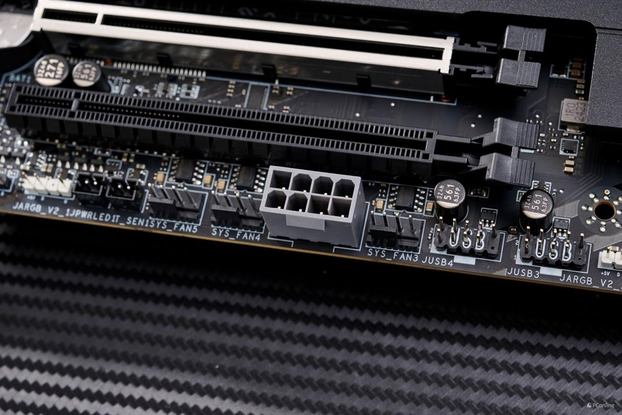 比较特别的是这次微星MPG X870E CARBON WIFI暗黑主板配上了显卡的8Pin接口,进行PCIe插槽的辅助供电。