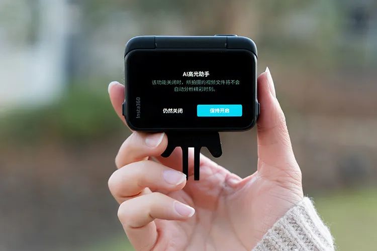 此外,这款运动相机前屏的下方印有DUAL AI CHIP的字样,这表明了它搭载有双AI芯片,相机中应该会加入不少AI功能,其实一代产品的APP就加入了AI高光时刻和AI魔术师等功能,可以预计二代的AI功能应该会更加强大。