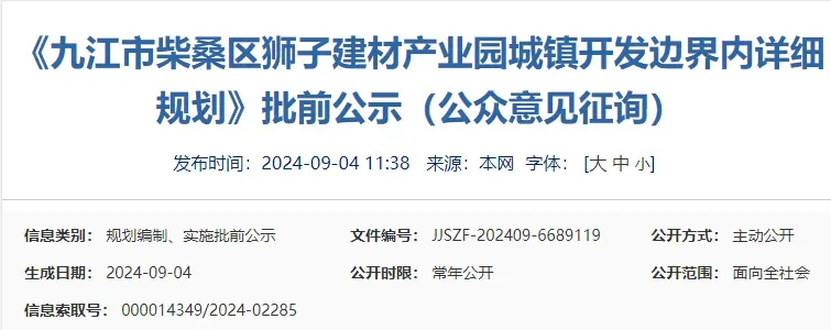《九江市柴桑区狮子建材产业园城镇开发边界内详细规划》批前公示(公众意见征询)