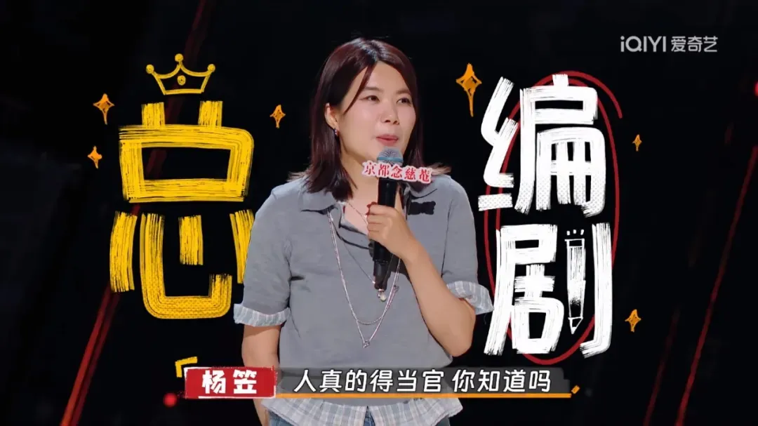 在爱奇艺《单口季》上,杨笠做为“魔王”登场,在段子中得意地说:跳槽之后,她终于当上了总编剧。