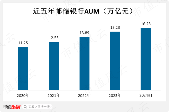 截至2024年6月末,邮储银行资产总额突破16万亿元,达16.41万亿元,较上年末增长4.37%,资产规模稳步扩张。