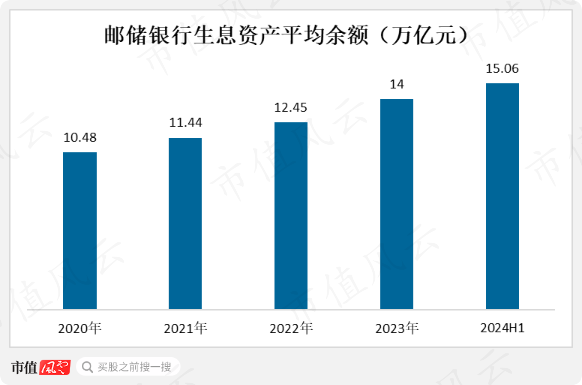 首先,今年上半年邮储银行的生息资产平均余额为15.06万亿元,同比增长10.5%。其中,占比最大的客户贷款余额为8.45万亿元,同比增长12.3%,信贷增速优于国有大行平均水平。