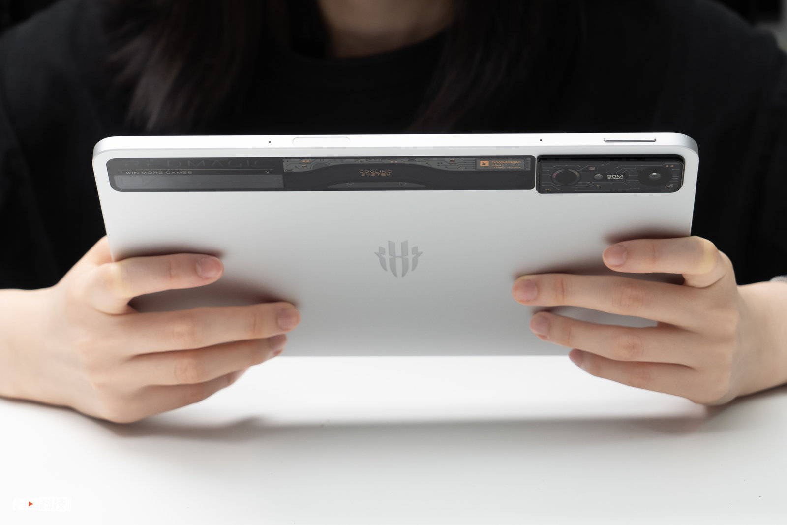 红魔电竞平板Pro这次一共有两款颜色可选,分别是氘锋透明暗夜和氘锋透明银翼,我们上手的这款是氘锋透明银翼,两款颜色都非常耐看,但我个人更喜欢这款氘锋透明银翼。