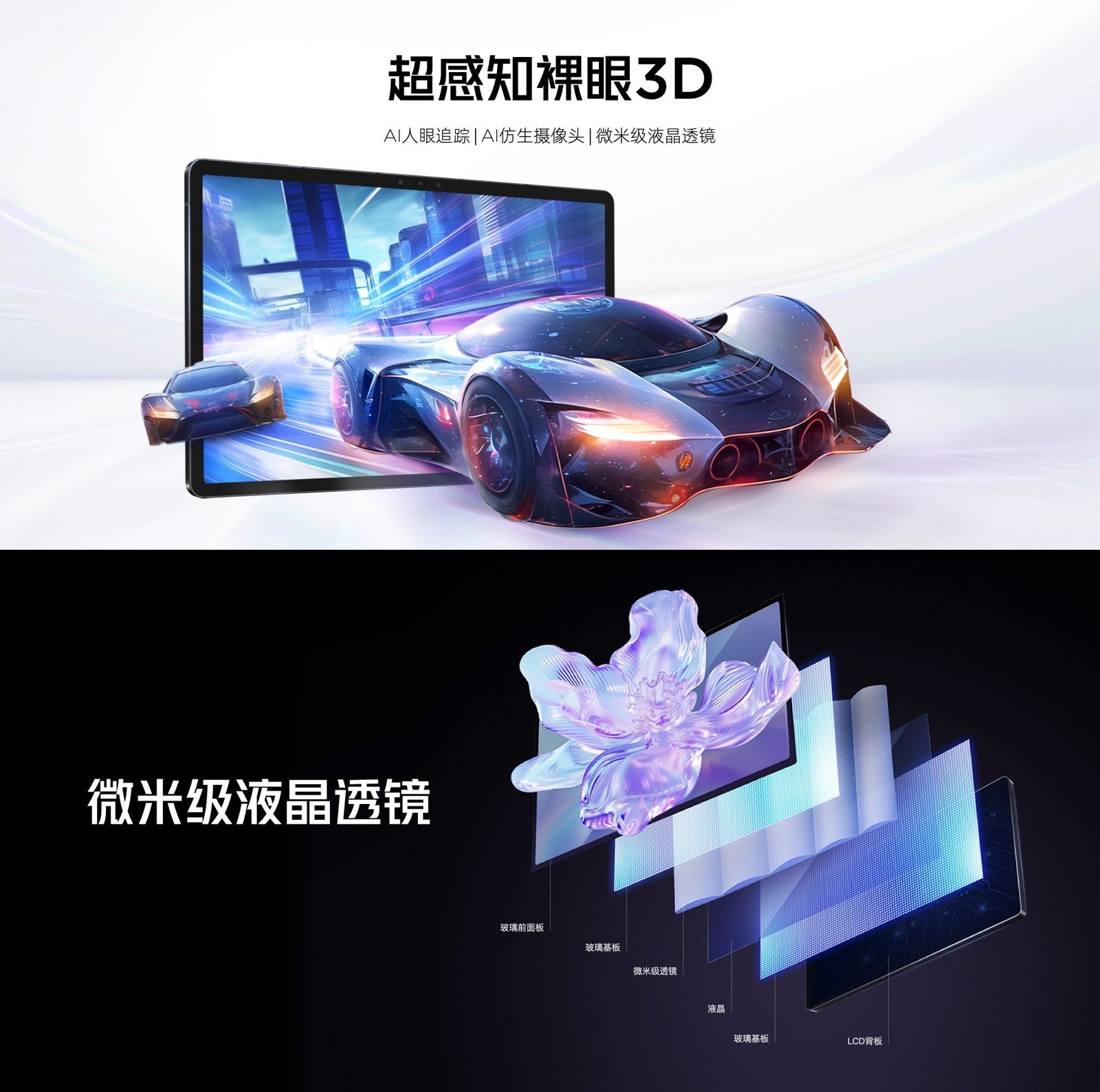 如名字所示,红魔平板·3D 探索版搭载了一块支持“超感知裸眼 3D”的显示屏,其采用了微米级液晶透镜,依靠双目视差原理,在人眼之中呈现 3D 画面。这块屏幕本身的配置也还算不错,有 12.1 英寸大,分辨率为 2560×1600,支持最高 144Hz 的高刷新率。