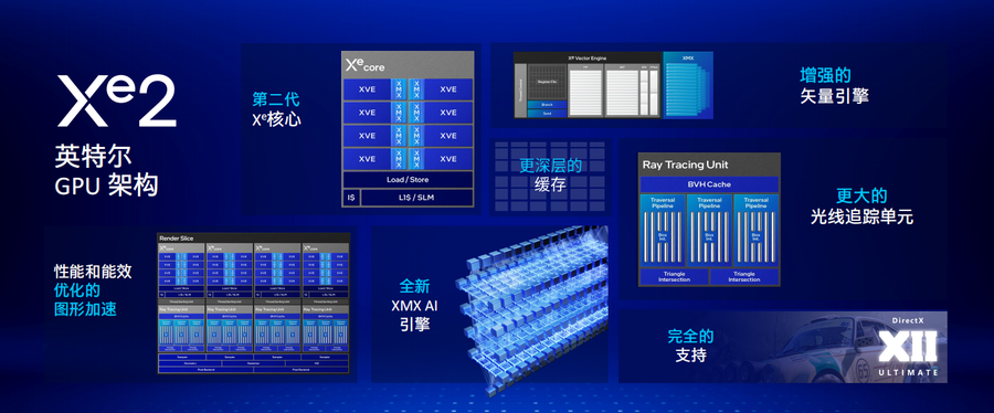 英特尔酷睿Ultra 200V系列处理器的核芯显卡采用了Xe 2 GPU架构,是全新的显卡架构。