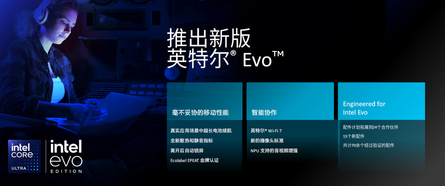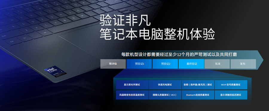 借助此次英特尔酷睿Ultra 200V系列处理器发布的契机,英特尔还发布了新版英特尔Evo认证。每款机型设计都需要经过至少12个月的严苛测试以及共同打磨,才能通过新版英特尔Evo认证。