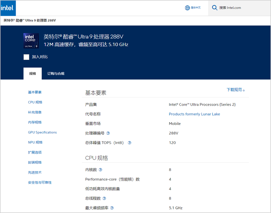 英特尔酷睿Ultra 200V系列处理器的产品页面已上线英特尔官方网站。广大网友可以前往查询具体的处理器参数信息。