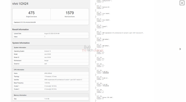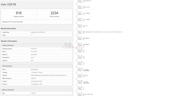 另一方面,V40 Lite 5G版本也在SDPPI上现身,型号为“2418”。其Geekbench测试结果显示,单核得分为916,多核得分为2234。尽管初步推测可能采用骁龙6 Gen1芯片,但源代码揭示其配备Adreno 613 GPU,表明其实际搭载的是骁龙4 Gen2。