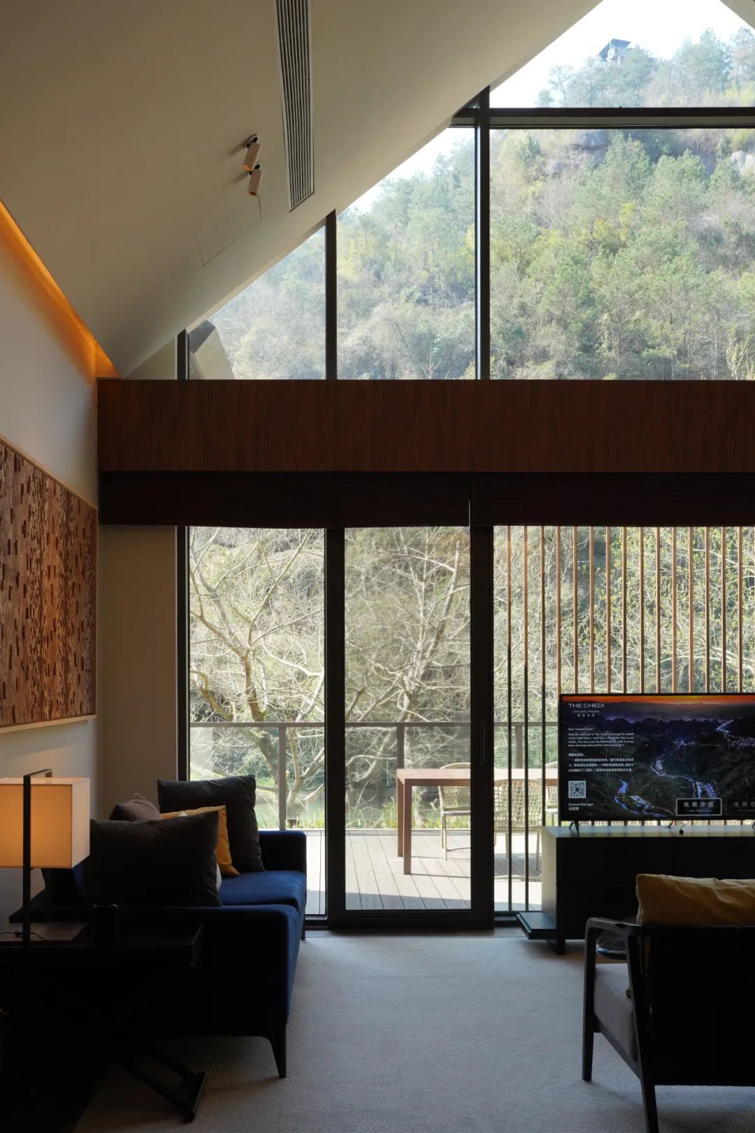 云溪上外表的平凡就像我们每天可见的蓝白天空一样,晃眼过去,不会有任何惊艳。这正是它的狡黠之处,用普通的外表与自然山景做一个融合,不让太过华丽的建筑“打扰”这份自然山景。云溪上在莫干山的选址同样契合了它所呈现的淡泊——莫干山最偏远的木竹坞村。走进内里,却会被不停惊艳。躺在房间里,透过180°无死角的落地玻璃窗,满眼的山竹绿意就像栖身于山竹间,夜晚听潺潺溪水和蛙声一片,早晨在清脆鸟鸣和绿意中醒来。房内大多数的家具都是手作品,大到房屋设计空间结构,小至桌椅摆件花卉钥匙扣,极简的设计在不经意间映衬在了舒服的质感上。卫浴选用汉斯格雅,洗浴选用佰草集,床垫配置金可儿,水暖选用高端COPA,地板采用兔宝宝……是对客人舒适洗浴睡眠的诚意和讲究。
