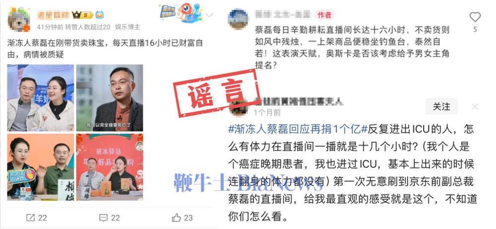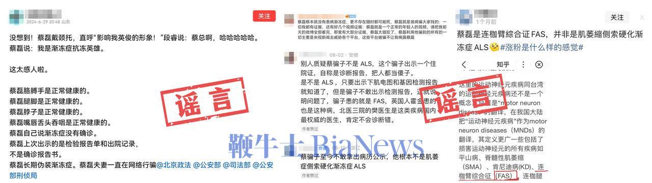 谣言一:蔡磊装病,不是渐冻症(肌萎缩侧索硬化),是上肢肌无力