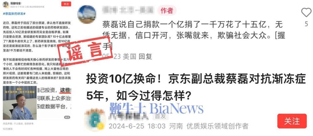 鞭牛士 9月6日消息,渐冻症抗争者、京东前副总裁蔡磊在微博发布《关于近期网络谣言的严正声明》辟谣近期相关谣言。