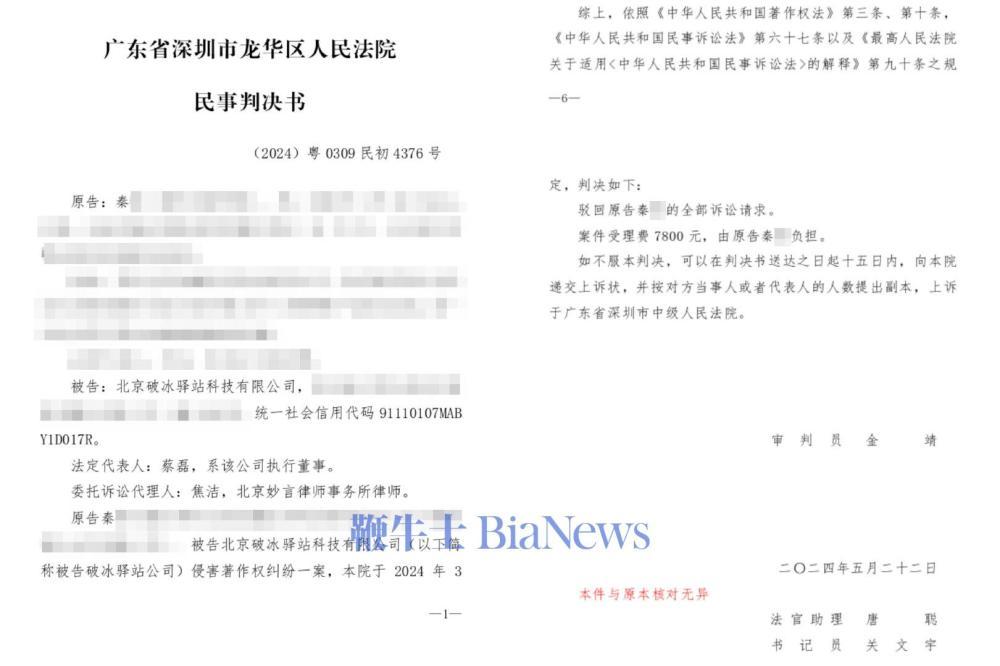 蔡磊担任法定代表人的破冰驿站公司合法经营,健康运行。目前为止,公司仅有一起诉讼案件,且系他人既无事实依据又无法律依据的碰瓷,该案已于2024年5月22日作出一审判决,原告秦某败诉,一审判决结果如下: