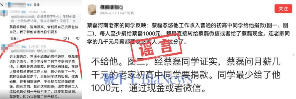 谣言三:蔡磊病情好转/蔡磊病情时好时坏
