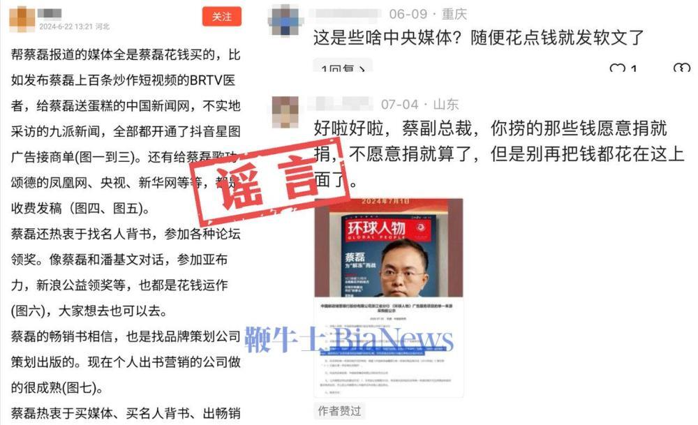 谣言十二:蔡磊买通新华社、央视新闻、人民日报、环球时报杂志社等媒体,花钱上封面