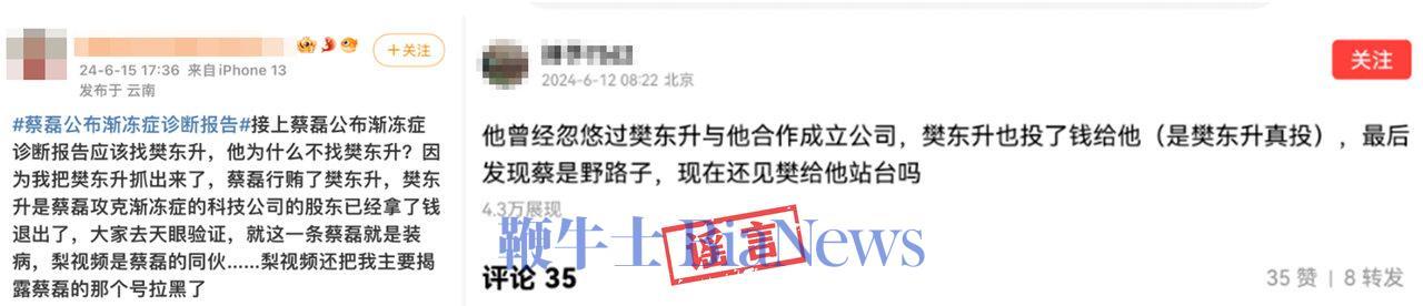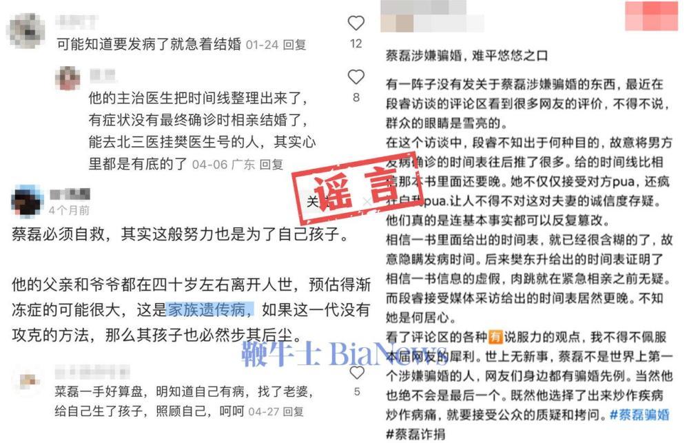 谣言十五:蔡磊骗婚,有渐冻症家族遗传病史