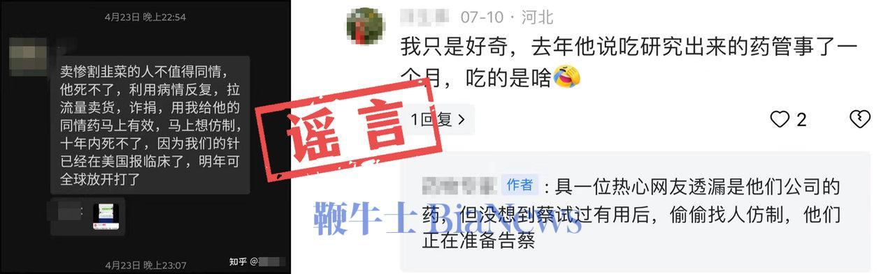 谣言十六:蔡磊用了国外的药,被治疗后病情稳定,还要仿制卖给渐冻症患者