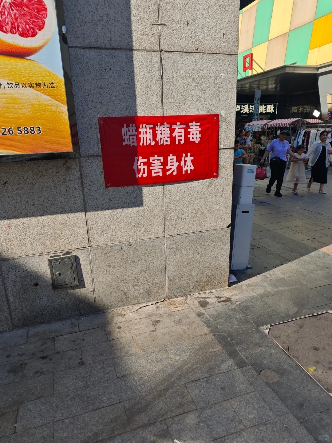近日,河北廊坊一网友发文表示,经过万达广场(廊坊广阳店)时看到了外墙上贴有标语“蜡瓶糖有毒,伤害身体”。另一网友评论称,其去万达广场还听到广播“蜡瓶糖是“三无”产品”。