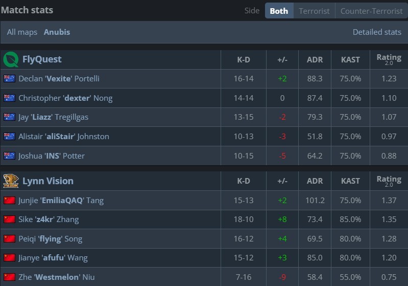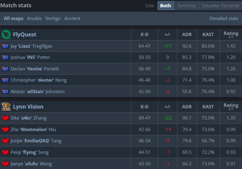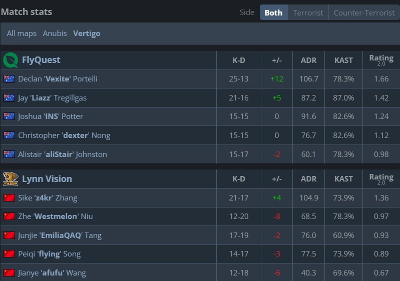 LVG率先赢下自己的选图Anubis,并在图二大厦中6-0领先,无奈还是遭遇翻盘。z4kr三张图打出69个击杀,rating1.35仍难救主。