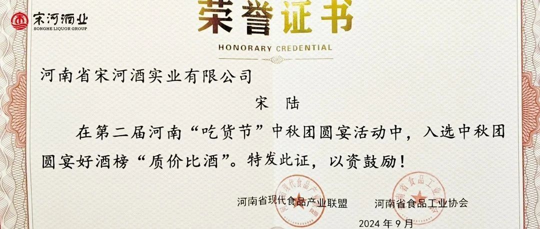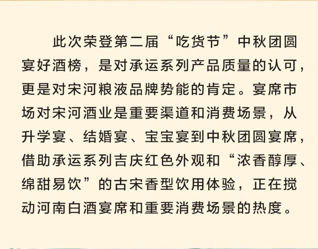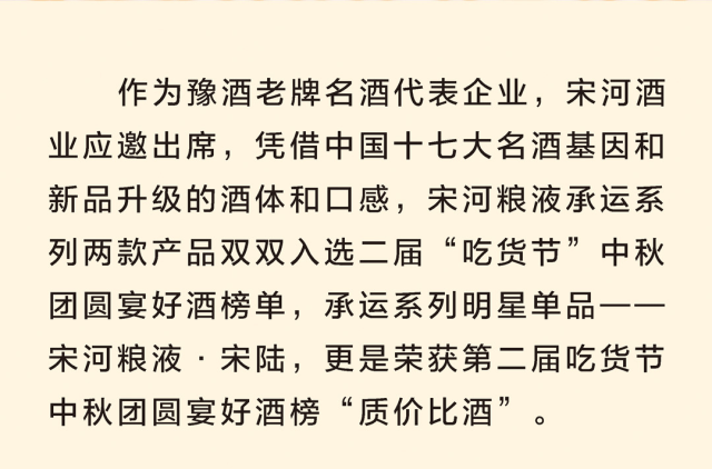 宋河粮液承运系列两大单品,荣登河南吃货节“中秋团圆宴好酒榜”