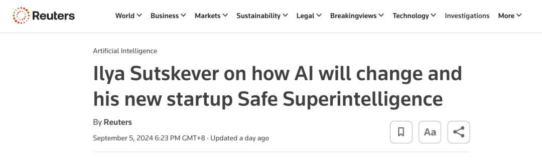 在SSI融资信息释出之后,路透社第一时间与Ilya Sutskever进行深度交流,Ilya也回应了有关SSI是否开源、未来发展等一系列问题。从采访中可以看到,他对于超级AGI的安全工作高度重视。