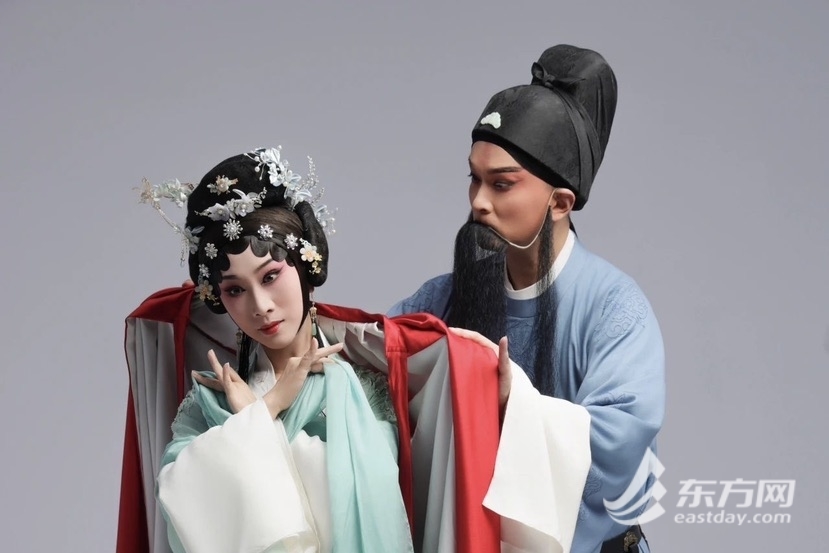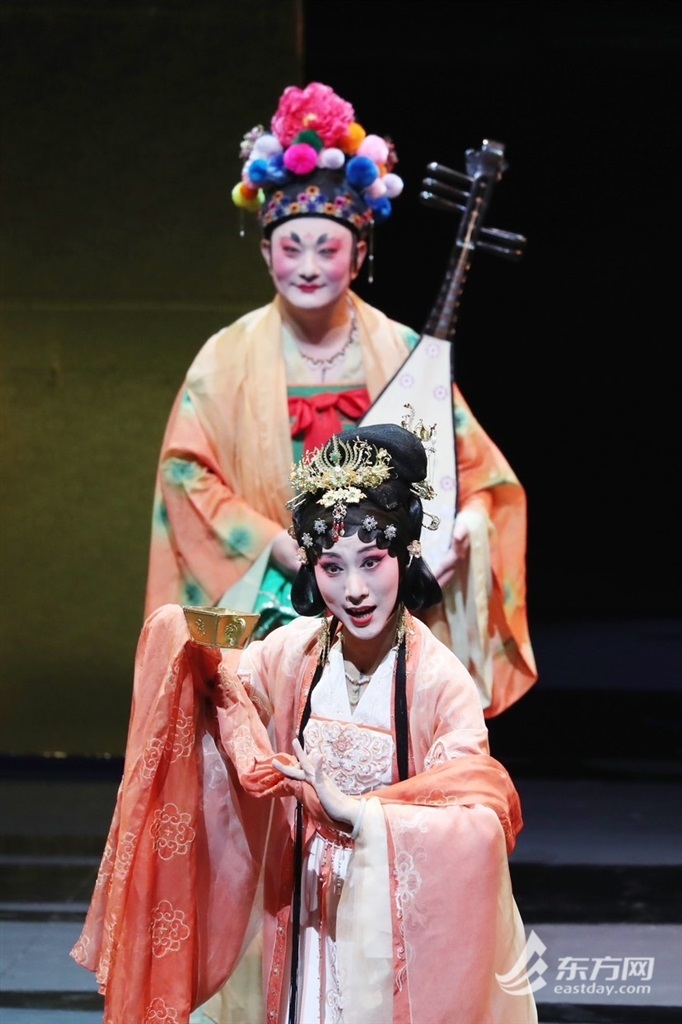 剧中,饰演“白居易”的是上海昆剧团梅花奖得主黎安,而饰演琵琶女“倩娘”的正是郑大圣的夫人、梅花奖得主沈昳丽。
