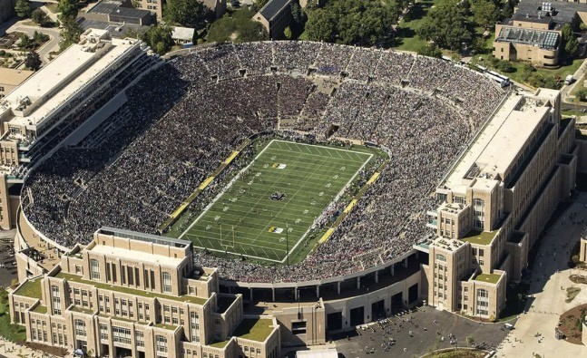圣母大学球场始建于1930年,耗资75万美元,相当于今天的1410万美元。2017年,圣母大学决定对体育场进行现代化改造,这是该校历史上最大的建设项目,其建设总成本按通货膨胀调整后为5.7241亿美元。