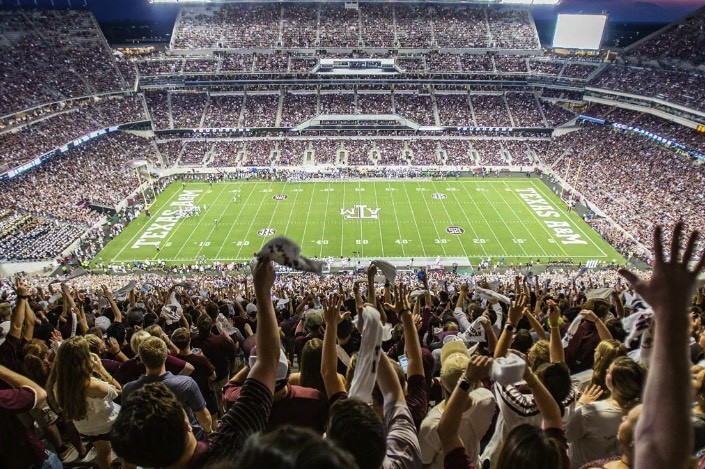 德克萨斯州农工的凯尔球场是造价最高的大学橄榄球场,位于德州大学城。该球场始建于1929年,2015年进行了翻新,总造价为6.504亿美元。凯尔球场是德克萨斯A&M大学的所在地,也是是全美第四大体育场,可容纳102733名观众。